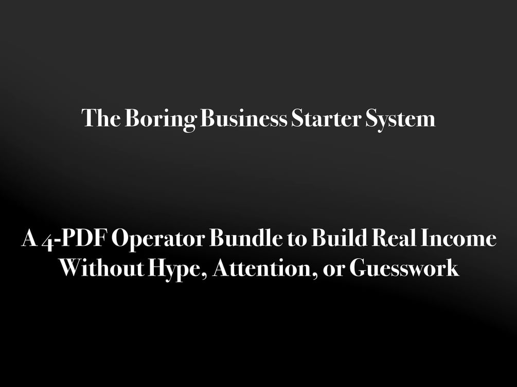 The Boring Business Starter System A 4-PDF Operator Bundle to Build Real Income Without Hype, Attention, or Guesswork£15£15https://schema.org/InStockgbpSystems ClubSystems ClubI want this!Add to wishlist New wishlistShare on XShare on Facebook Copy linkCopy product URL